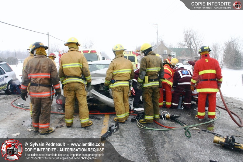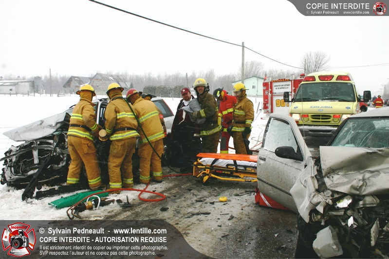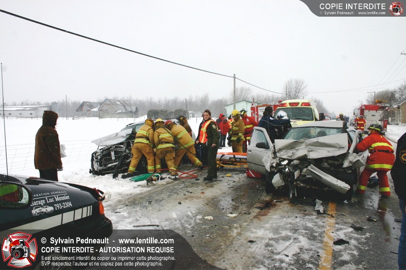 Suite à une perte de contrôle sur la chaussée glissante, un véhicule en percute un autre sur le rang Charlotte à St-Liboire. Deux victimes succombent à leurs blessures.