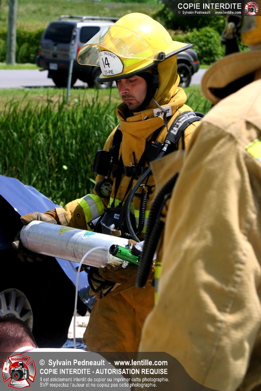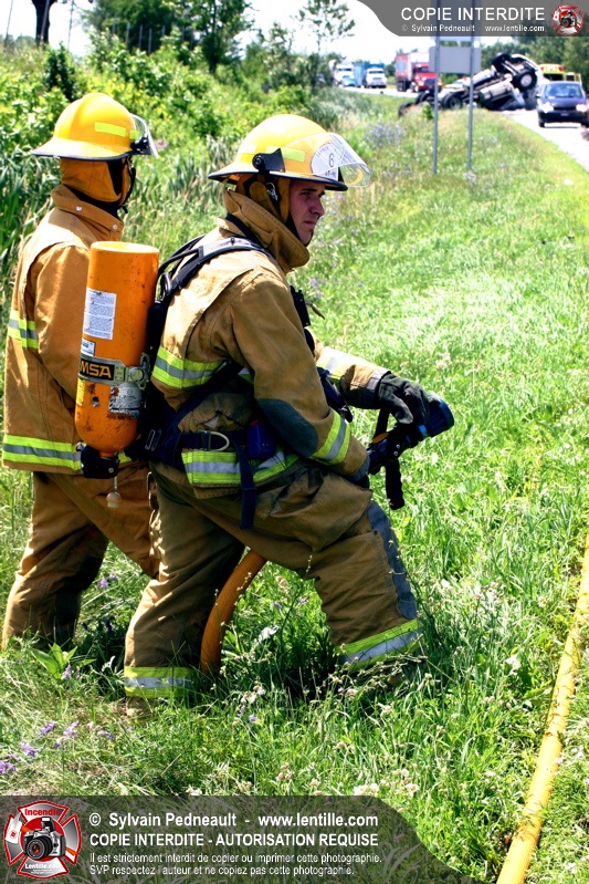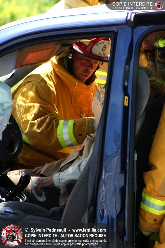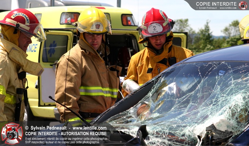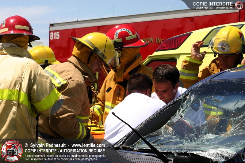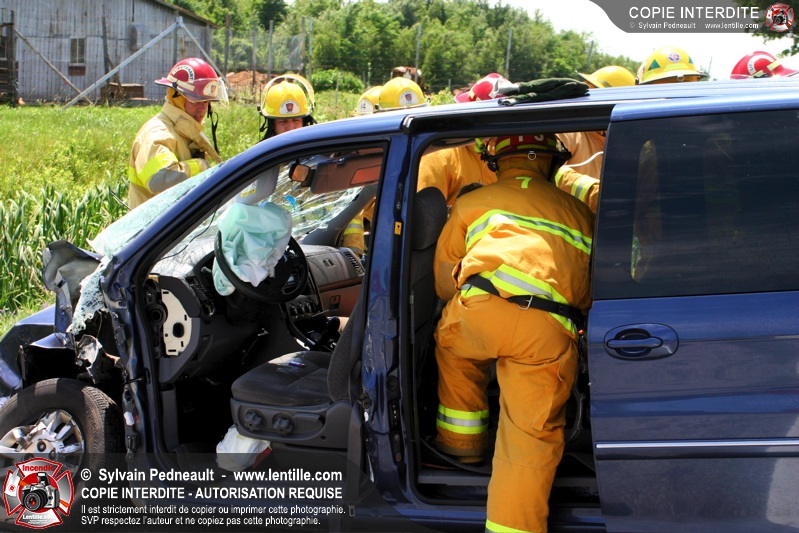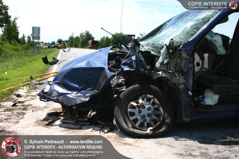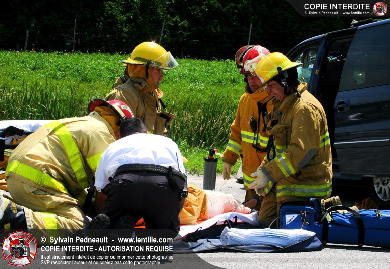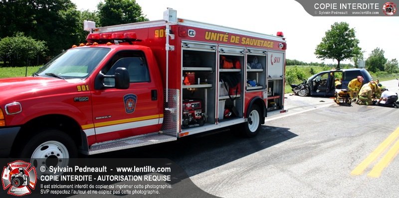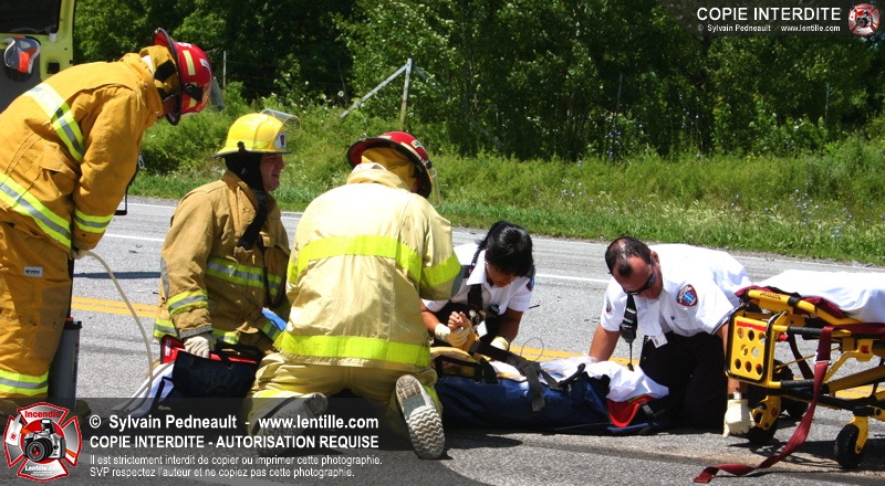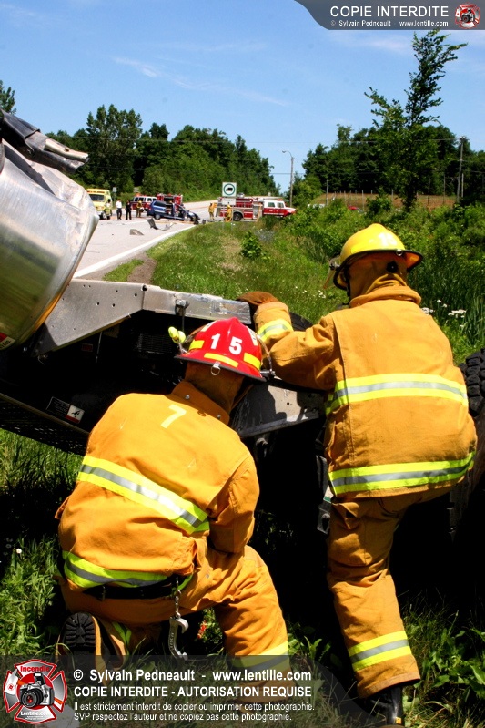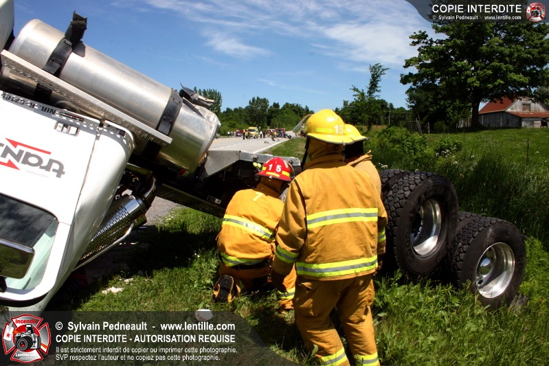 Peu après midi, un camion percute avec force une minifourgonette sur la route 235 à St-Pie. L'impact est si violent que le camion est projeté une centaine de mètres plus loin, à l'envers sur le bord de la route.
