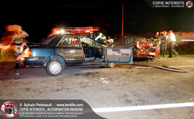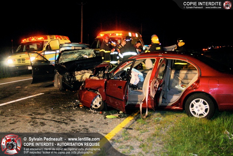 Une grave collision frontale s'est produite sur la route 116 entre Ste-Madeleine et St-Hilaire après qu'un véhicule se soit engagé en sens inverse sur la voie est.