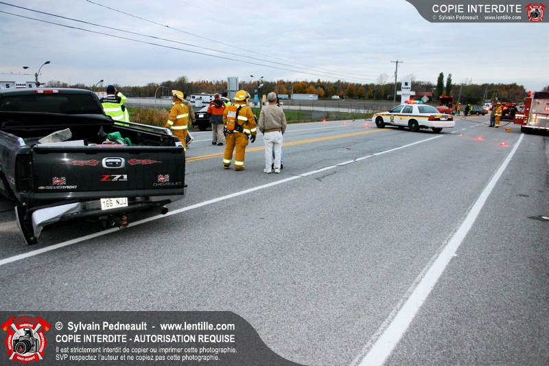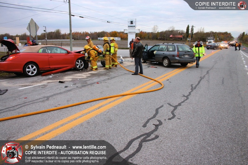 Un accrochage à trois véhicules a provoqué une violente collision frontale sur la route 235 à St-Pie. Les premiers répondants et le SSI de St-Pie ont répondu à l'appel.