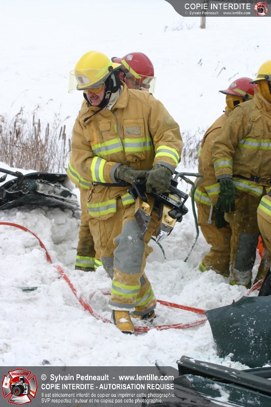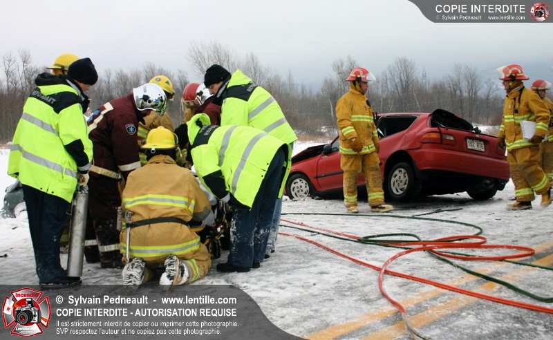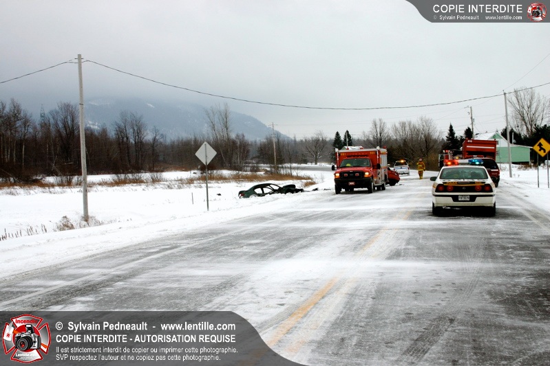 La chaussée glaçée a causé plusieurs sorties de routes en Montérégie mardi matin, dont une grave collision impliquant deux véhicules sur la route 235 à St-Pie. Les PR et le SSI de St-Pie ont répondu à l'appel, assistés de l'équipe de désincarcération de Saint-Hyacinthe, des paramédics d'Ambulances Saint-Hyacinthe et de la Sûreté du Québec.