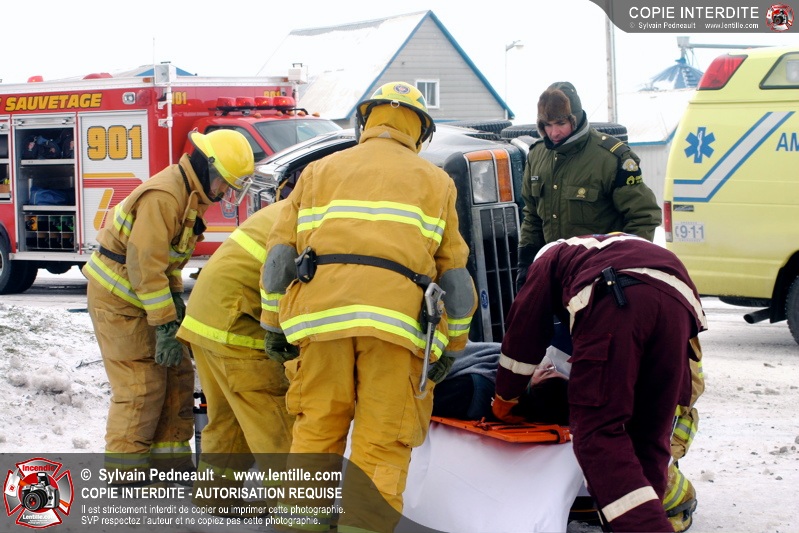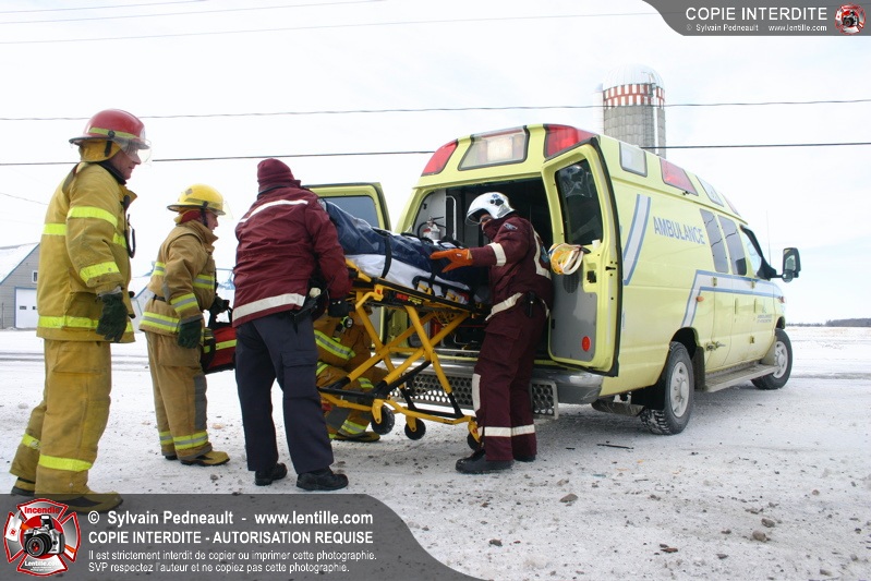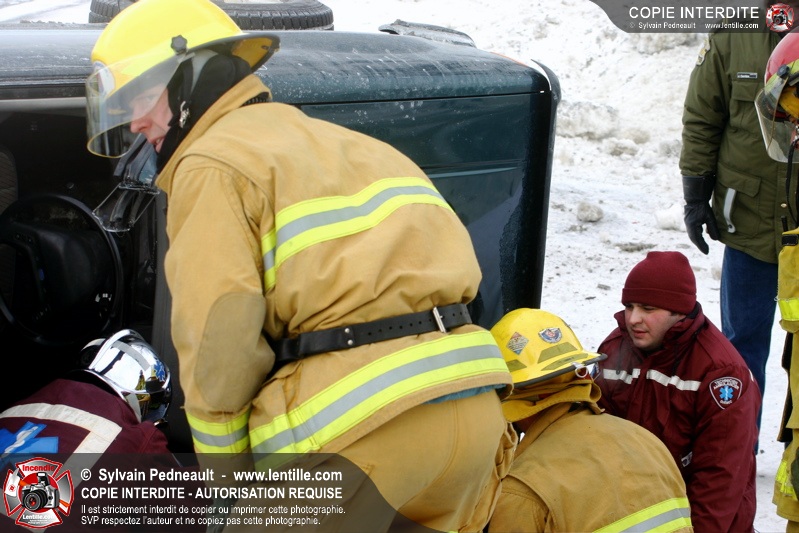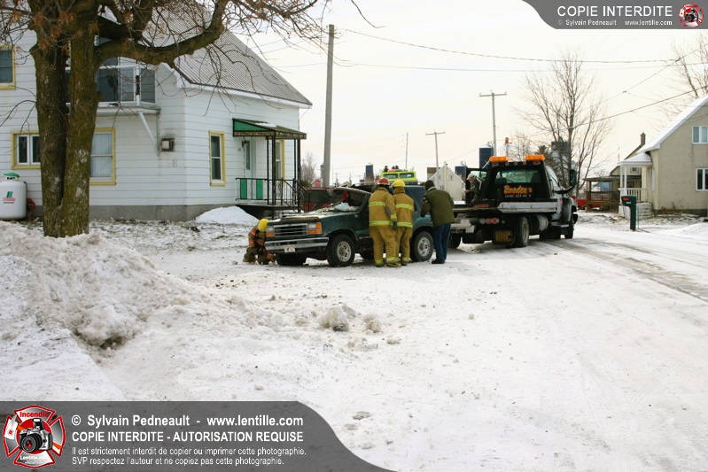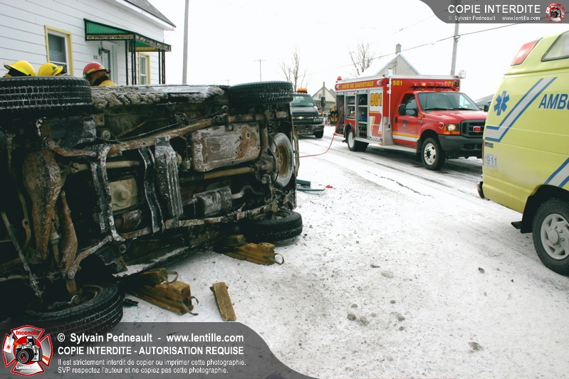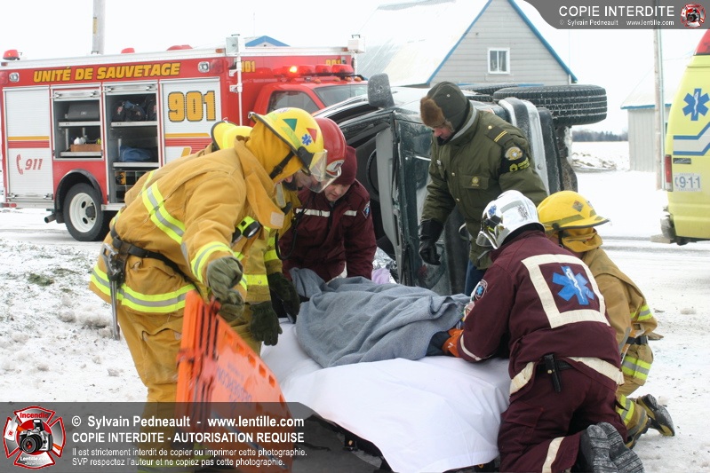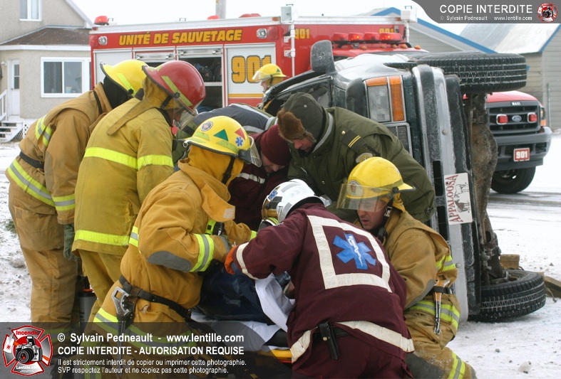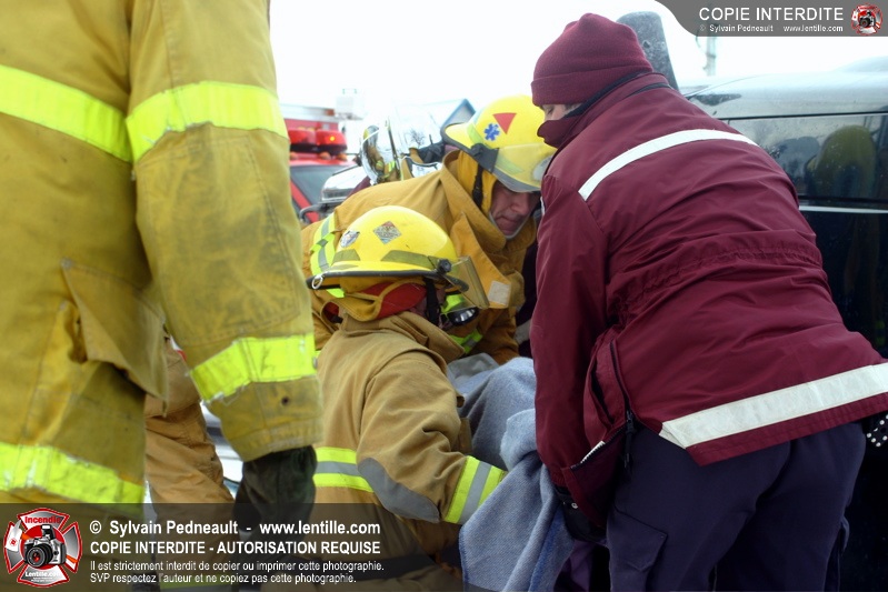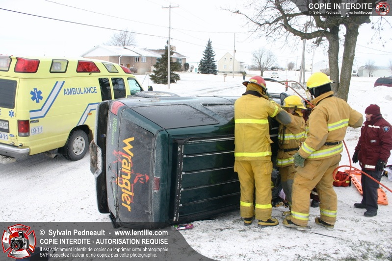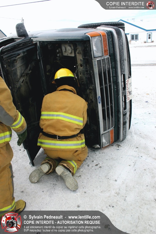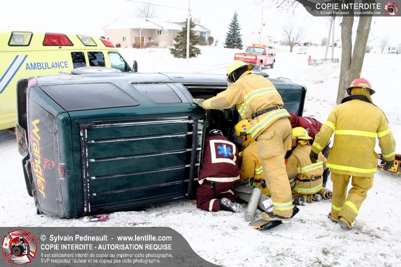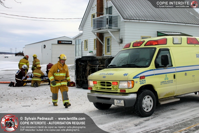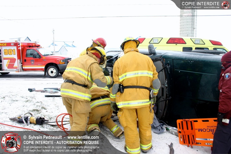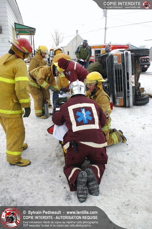 Une automobiliste a perdu la maîtrise de sa camionnette sur la chaussée complètement glacée du 2e Rang à Saint-Hyacinthe. L'équipe de sauvetage du Service de sécurité incendie de Saint-Hyacinthe a dû utiliser les pinces de désincarcération pour sortir la victime de sa fâcheuse position.