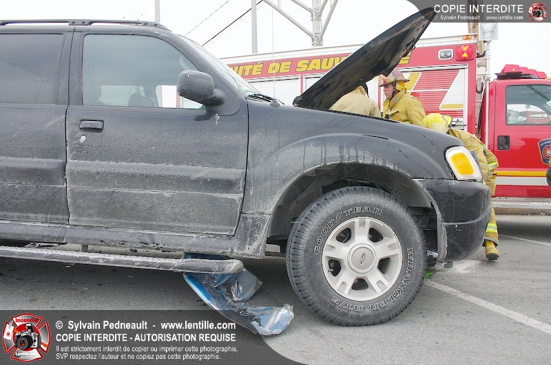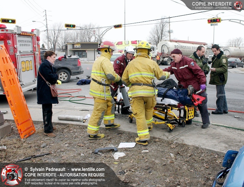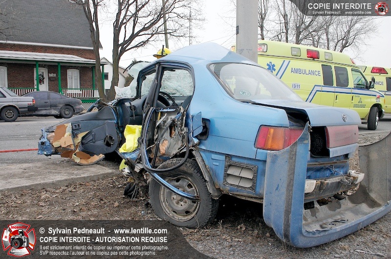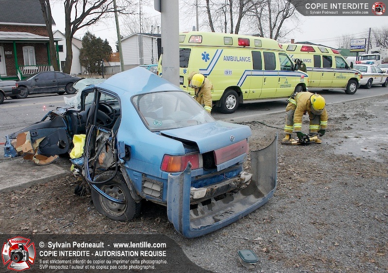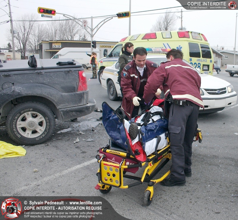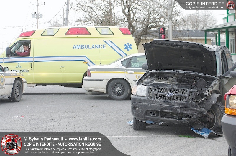 Une violente collision est survenue entre une camionnette et une petite voiture à l'angle des rues St-Louis et Des Seigneurs dans le secteur St-Joseph. Sous la force de l'impact, la voiture a été projetée contre un lampadaire. Après la désincarcération par les pompiers de Saint-Hyacinthe, les victimes ont été transportées d'urgence à l'hôpital par les paramédics d'Ambulance Saint-Hyacinthe. La Sûreté du Québec a pris en charge le site en attendant de compléter les expertises requises.