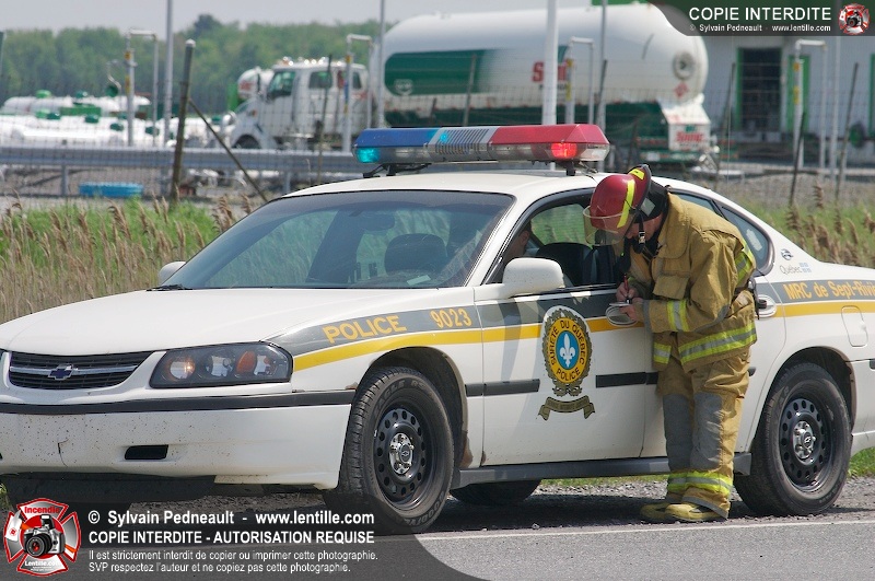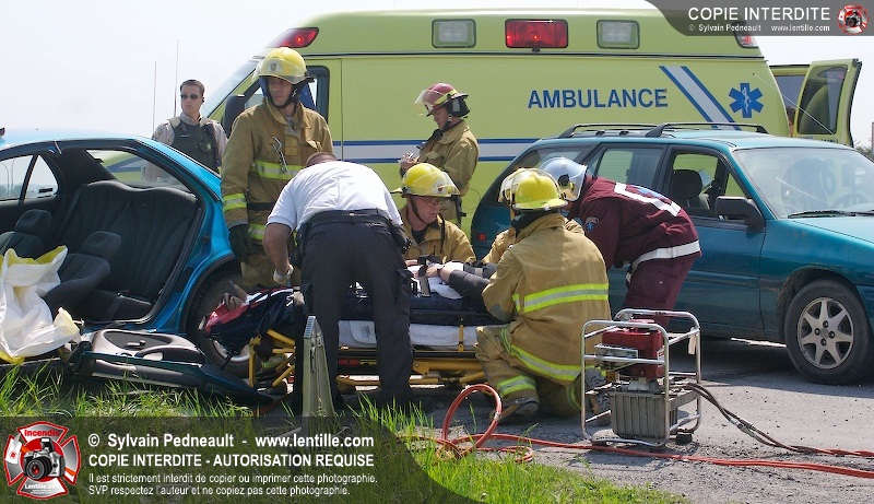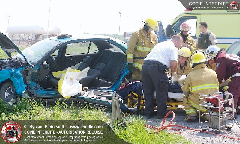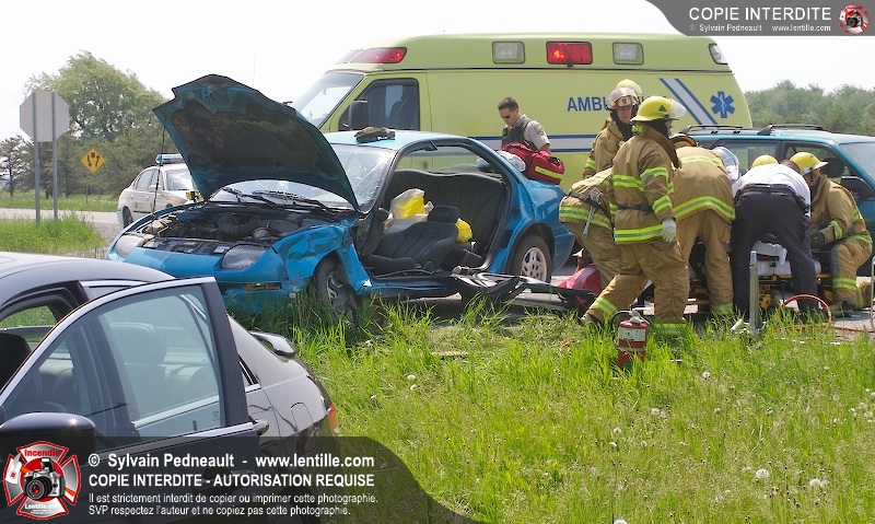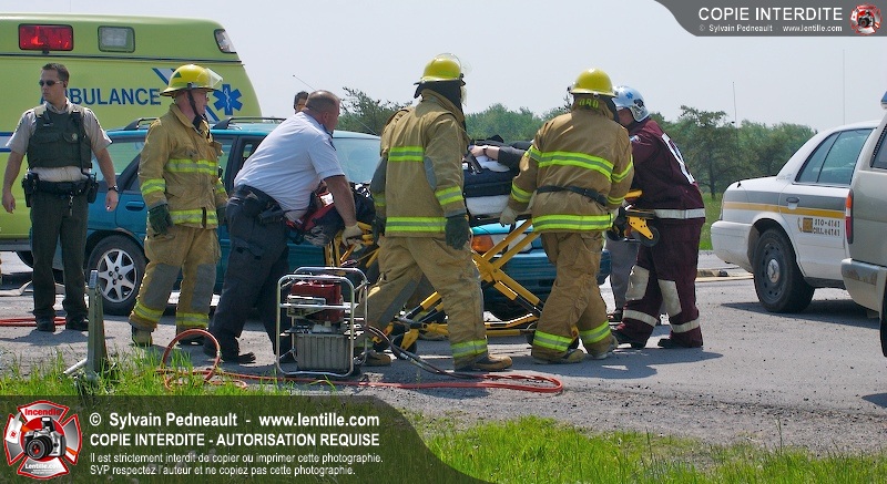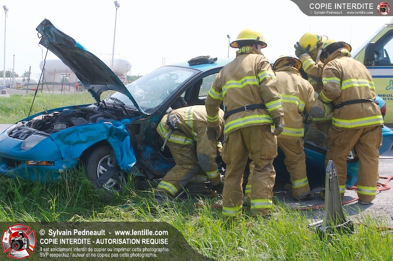 Une collision entre deux véhicules a nécessité l'intervention de l'unité de désincarcération du service de sécurité incendie de Saint-Hyacinthe, ainsi que des paramédics d'Ambulances Saint-Hyacinthe et des policiers de la Sûreté du Québec.