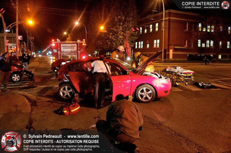 L'unité de désincarcération du SSI de Saint-Hyacinthe est intervenue à l'angle des boulevard Dessaules et Choquette pour un accident impliquant deux véhicules et un bloc de ciment.