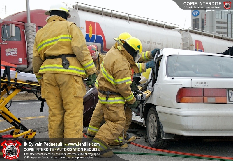 Les pompiers de Saint-Hyacinthe ont procédé ŕ la désincarcération d'une conductrice ŕ la suite d'une collision sur l'autoroute 20 ŕ la hauteur du centre-ville de Saint-Hyacinthe. Deux ambulances ont été requises pour transporter les victimes au centre hospitalier.