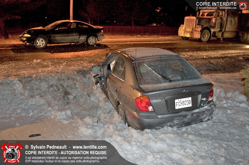 Deux automobiles sont entrées en collision sur le Grand Rang, alors que la chaussée était glissante.