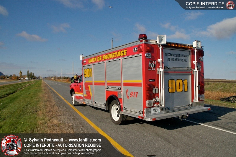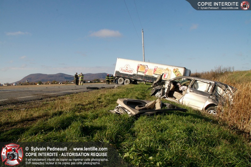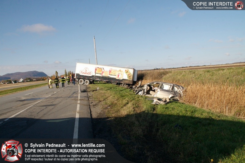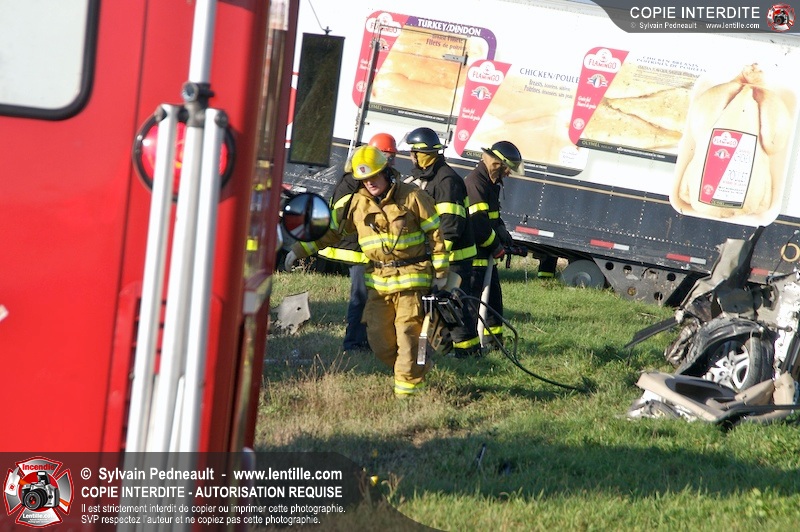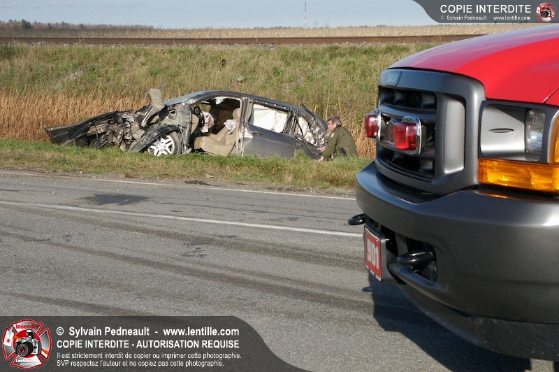 Désincarcération sur la route 116 à l'intersection du Chemin du Grand Rang.