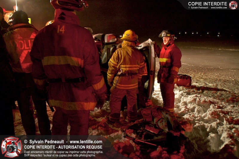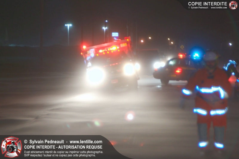 Fait à noter, le 901 de Saint-Hyacinthe a lui-même effectué une légère sortie de route en devant contourner une auto-patrouille aux abords du site. Heureusement, le 202 avec le premier kit de pinces était déjà sur place et les services du 901 n'ont pas été requis.