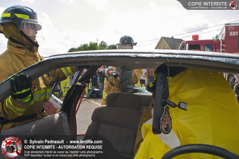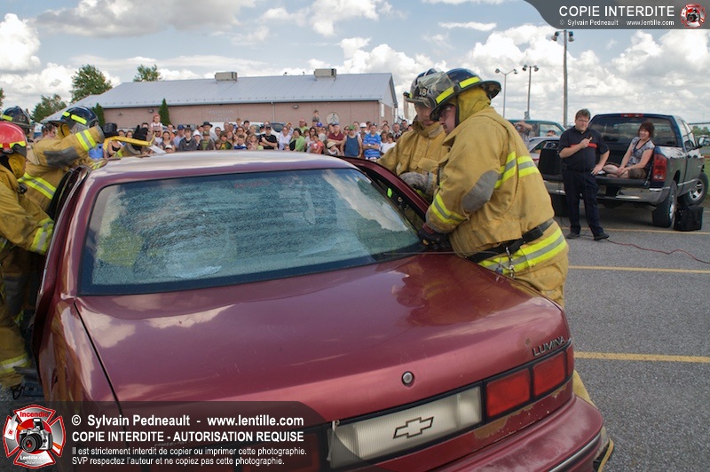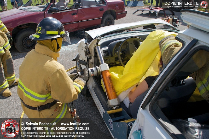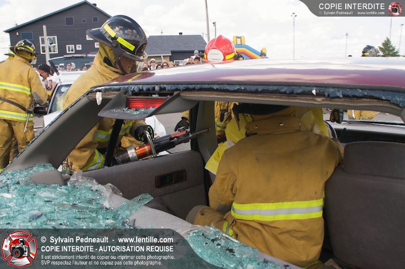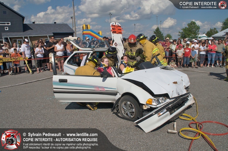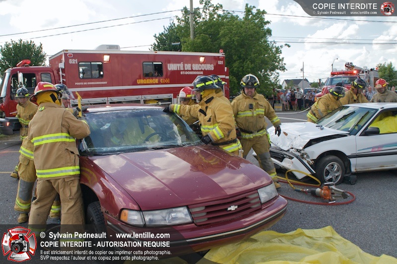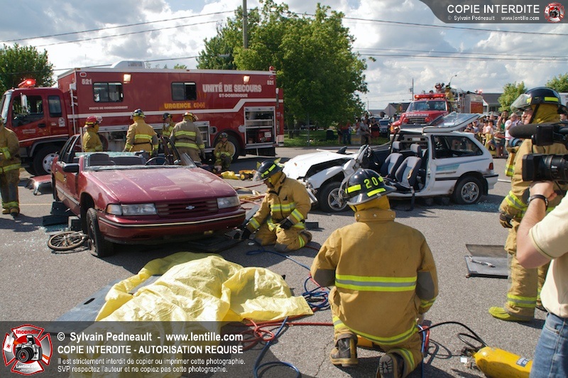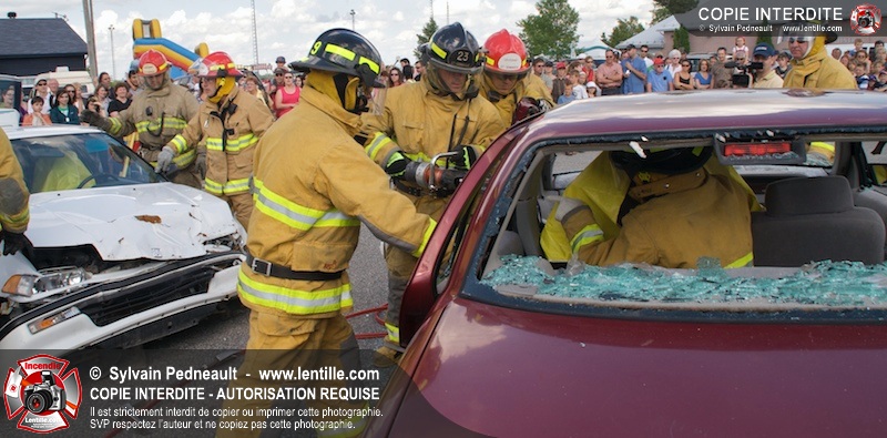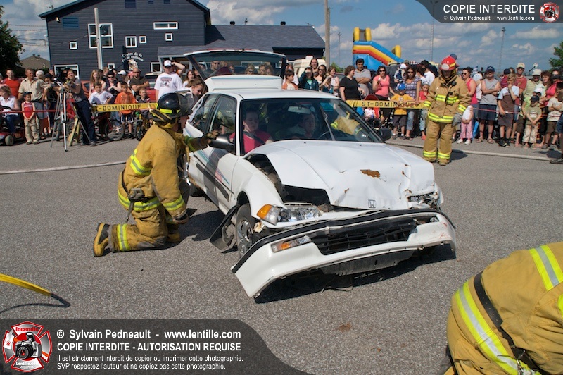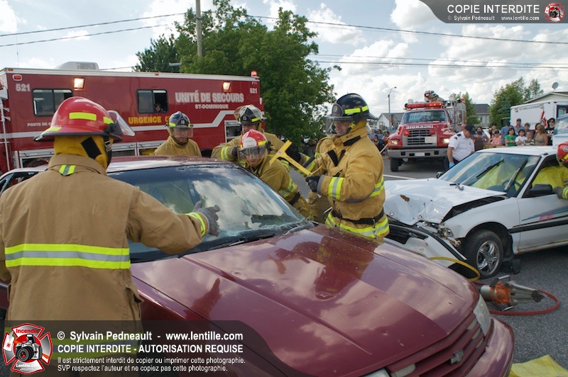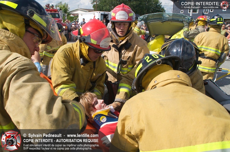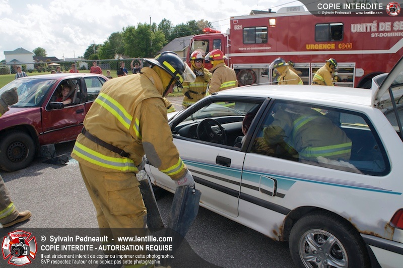 Les pompiers du Service incendie de St-Dominique ont organisé une démonstration de désincarcération automobile devant une grande partie des citoyens de la municipalité.