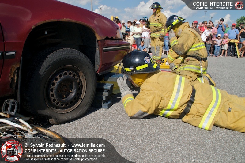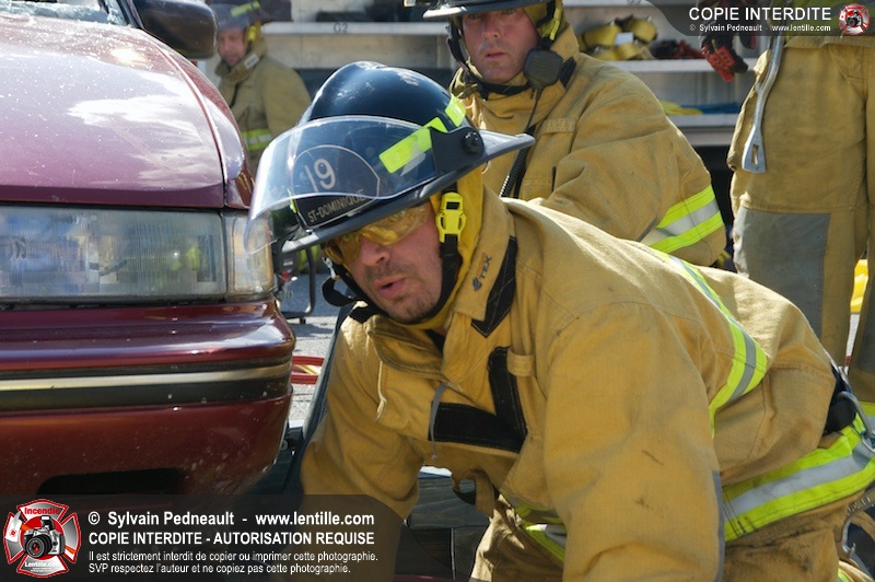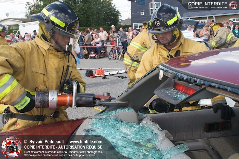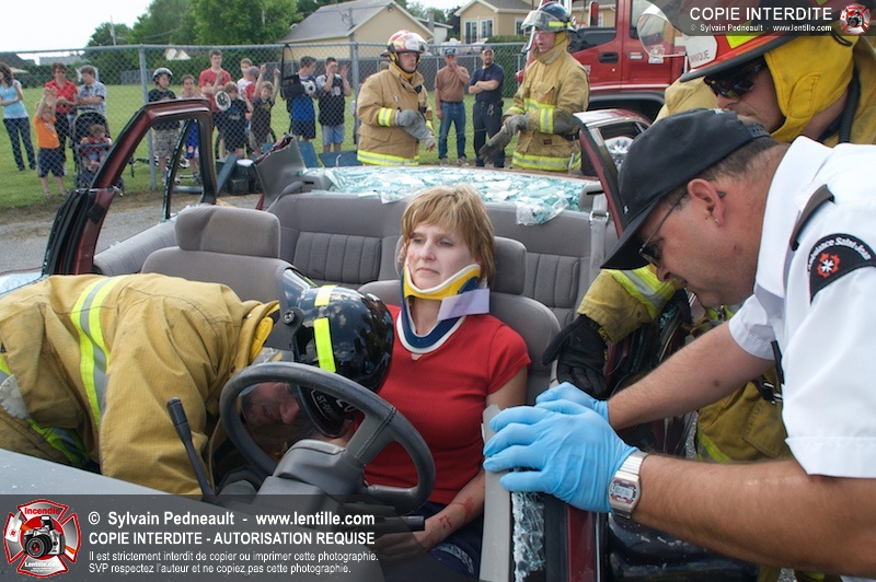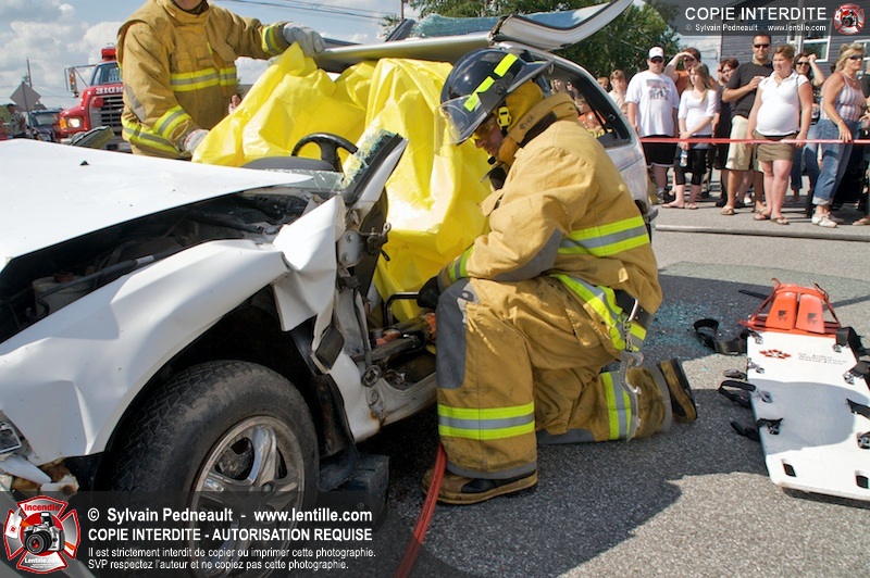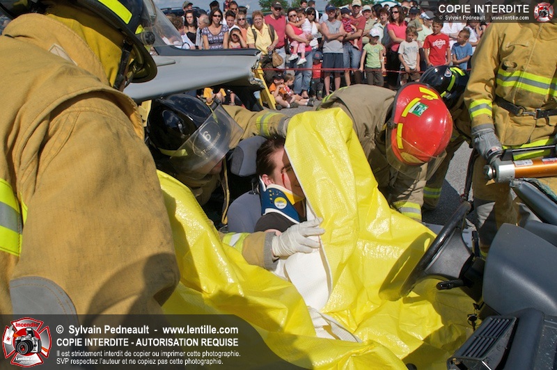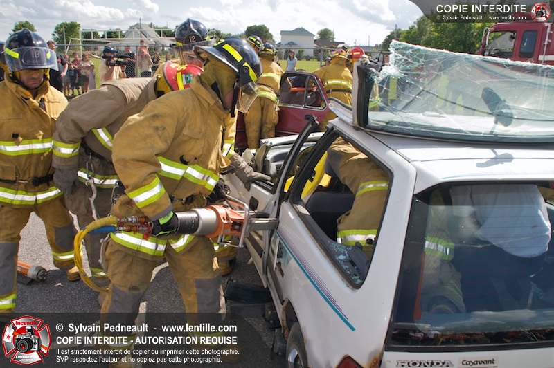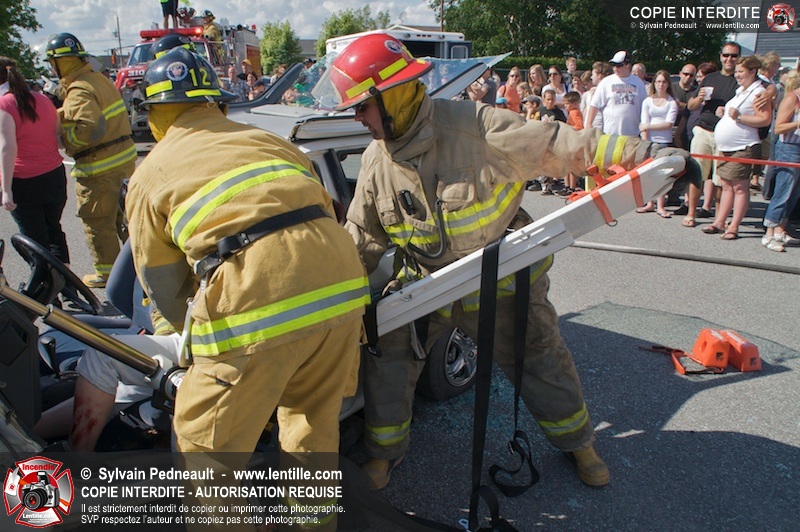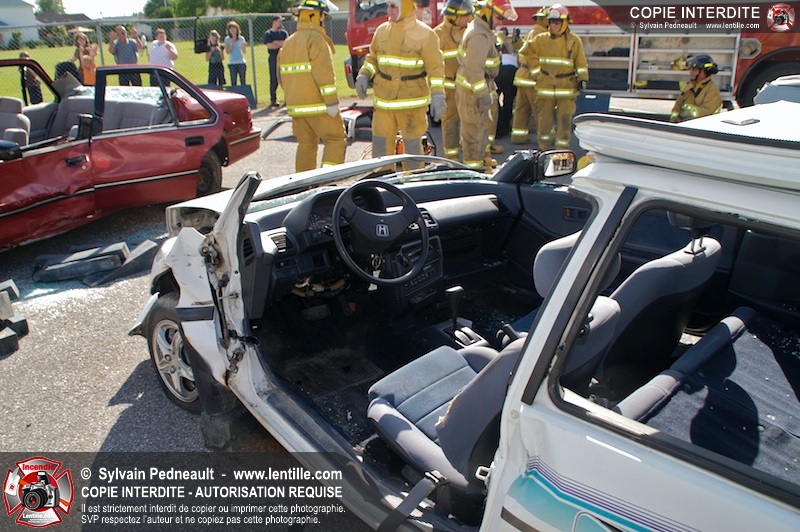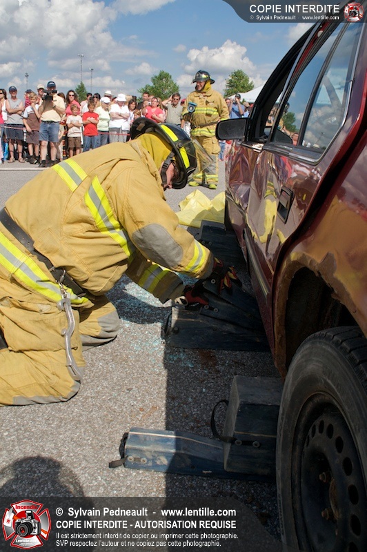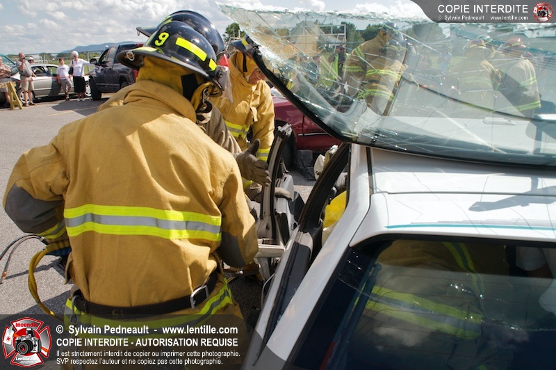 Les pompiers du Service incendie de St-Dominique ont organisé une démonstration de désincarcération automobile devant une grande partie des citoyens de la municipalité.