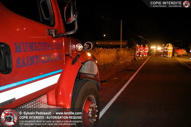 Une collision frontale entre deux véhicules sur le rang Charlotte à St-Liboire a entraîné la mobilisation de nombreux services d'urgence, notamment les pompiers de St-Liboire, les premiers répondants de St-Liboire, les pompiers de Saint-Hyacinthe, les paramédics de Saint-Hyacinthe et les policiers de la Sûreté du Québec.